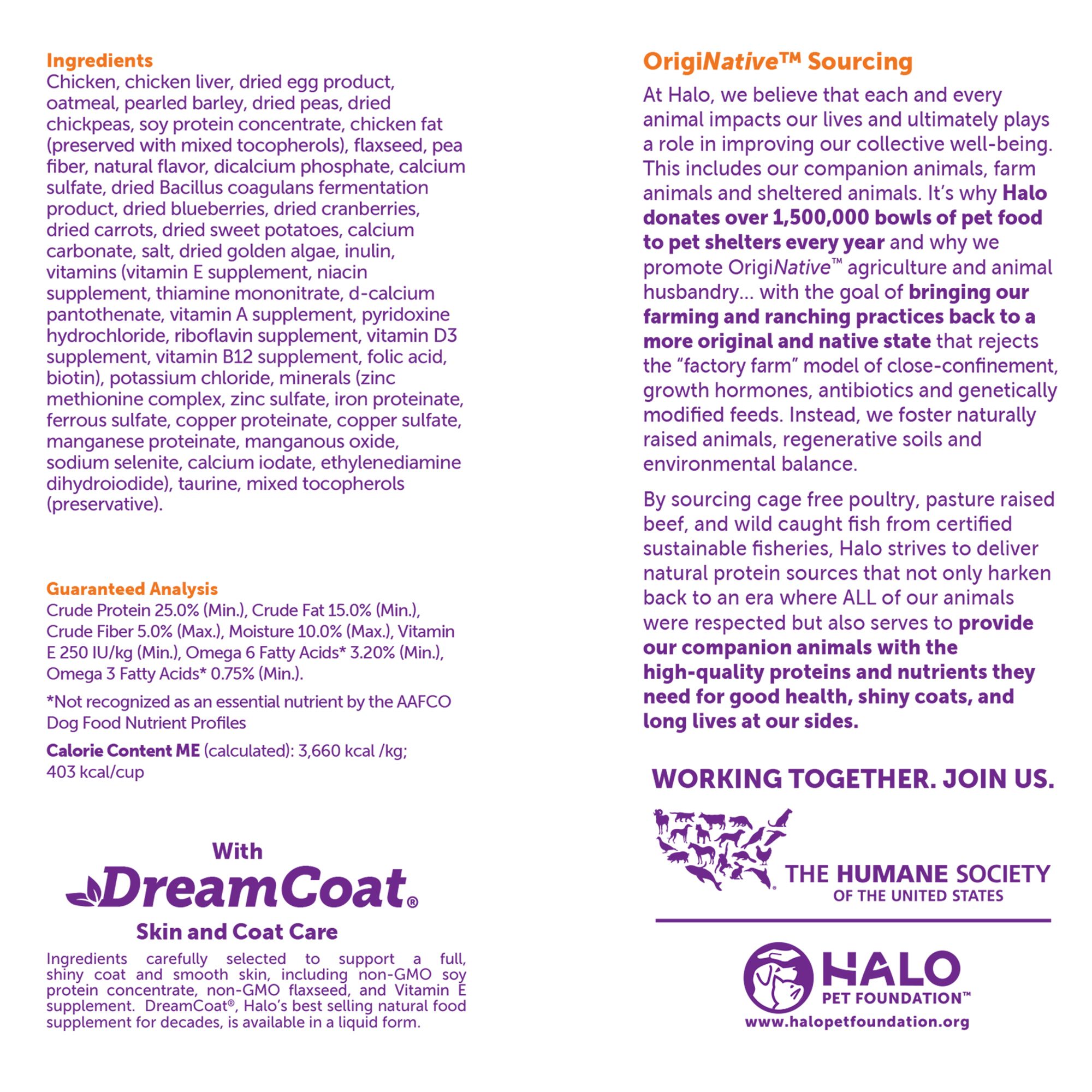 Halo s dry dog food is a fantastic choice to keep your four legged friend strong fit and happy. Believe it or not but your dog s nutritional requirements continue to vary according to their different life stages. Halo purely for pets has been making pet food since 1986. We do not accept money gifts samples or other incentives in exchange for special consideration in preparing our.
